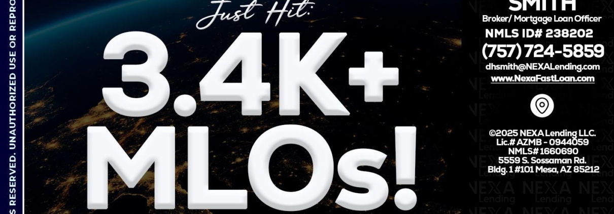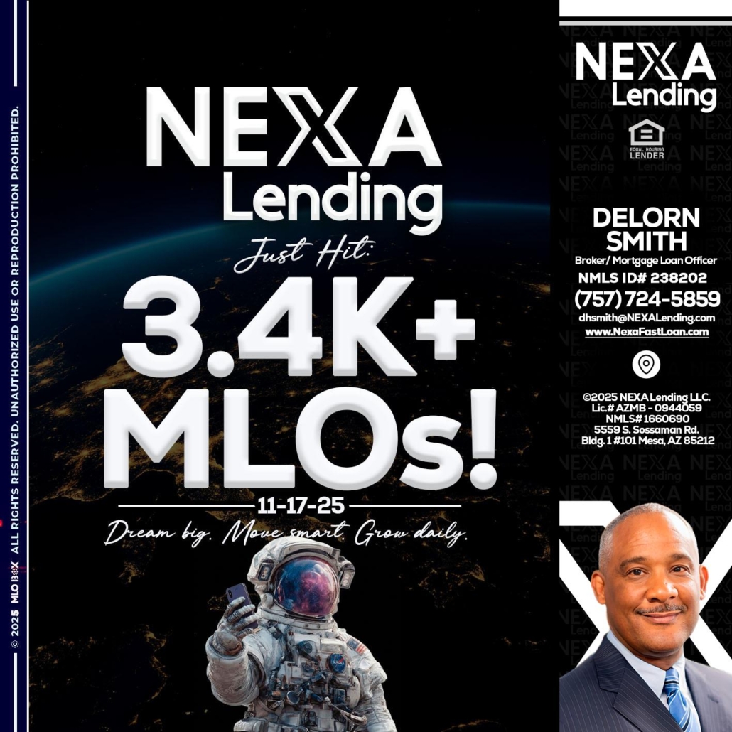 3.4K MLOs - Delorn Smith -Broker/ Mortgage Loan OfficerHi, my name is Delorn Smith. I’m a Loan Officer with NEXA Mortgage LLC., offering personalized mortgage solutions, fast customized quotes, great rates and service with integrity.