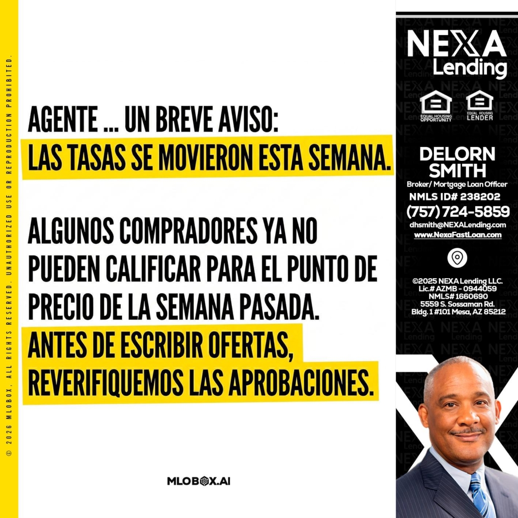 Hi, my name is Delorn Smith. I’m a Loan Officer with NEXA Lending LLC., offering personalized mortgage solutions, fast customized quotes, great rates and service with integrity.