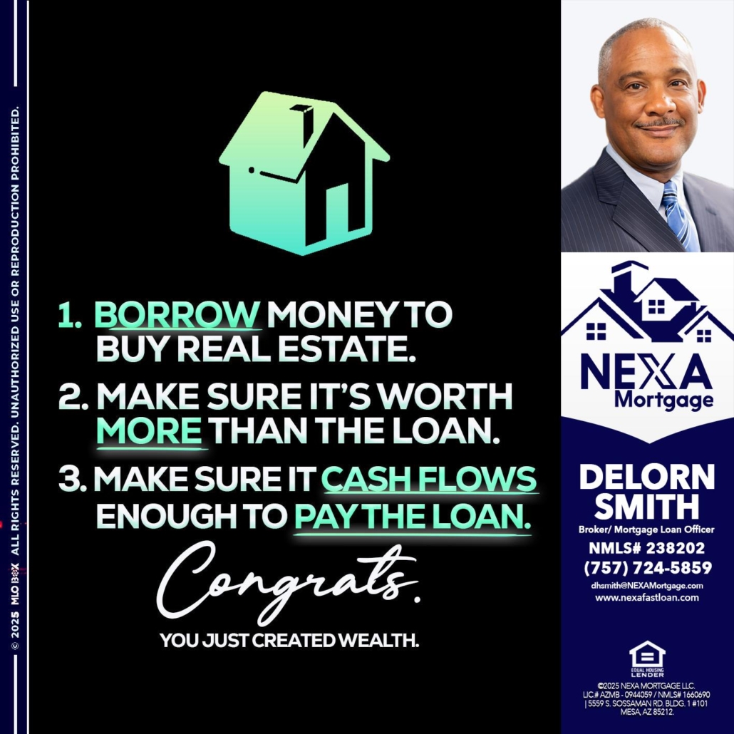 Hi, my name is Delorn Smith. I’m a Loan Officer with NEXA Mortgage LLC., offering personalized mortgage solutions, fast customized quotes, great rates and service with integrity.