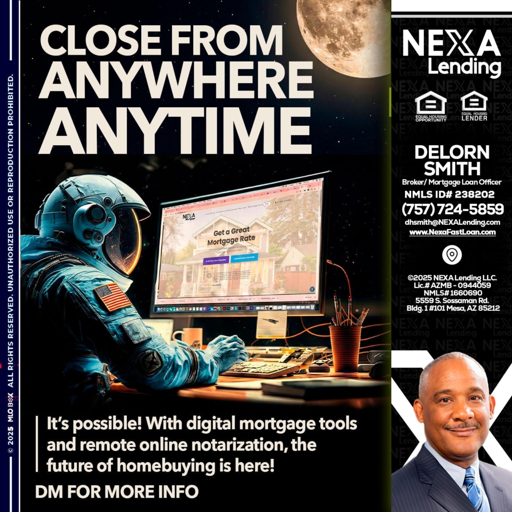 Hi, my name is Delorn Smith. I’m a Loan Officer with NEXA Lending LLC., offering personalized mortgage solutions, fast customized quotes, great rates and service with integrity.