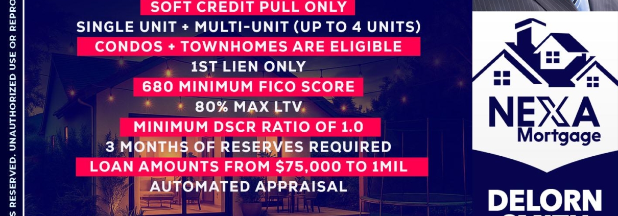 Hi, my name is Delorn Smith. I’m a Loan Officer with NEXA Mortgage LLC., offering personalized mortgage solutions, fast customized quotes, great rates and service with integrity.