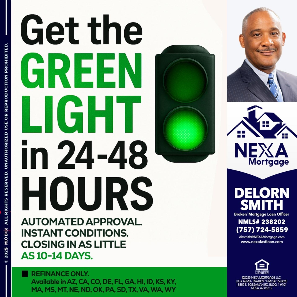 Hi, my name is Delorn Smith. I’m a Loan Officer with NEXA Mortgage LLC., offering personalized mortgage solutions, fast customized quotes, great rates and service with integrity.