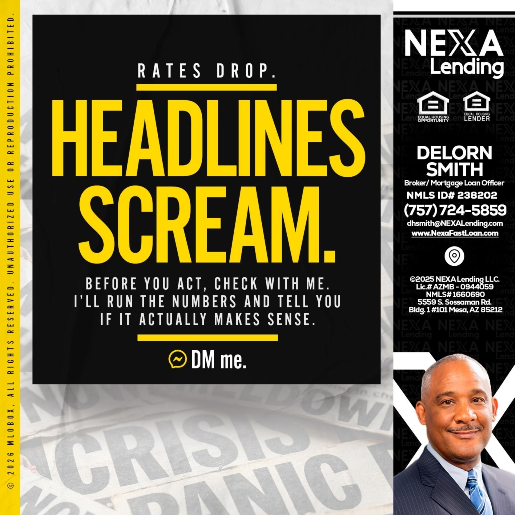 Hi, my name is Delorn Smith. I’m a Loan Officer with NEXA Lending LLC., offering personalized mortgage solutions, fast customized quotes, great rates and service with integrity.