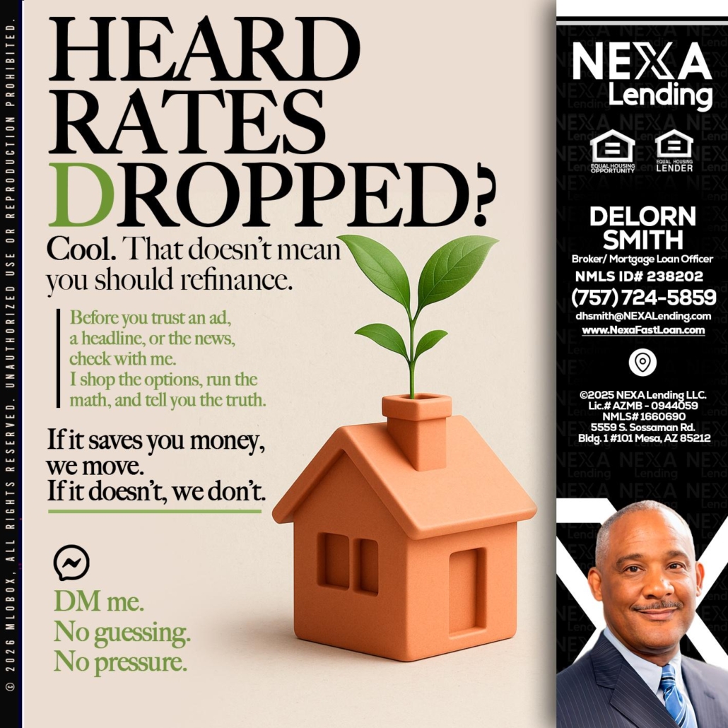 Hi, my name is Delorn Smith. I’m a Loan Officer with NEXA Lending LLC., offering personalized mortgage solutions, fast customized quotes, great rates and service with integrity.
