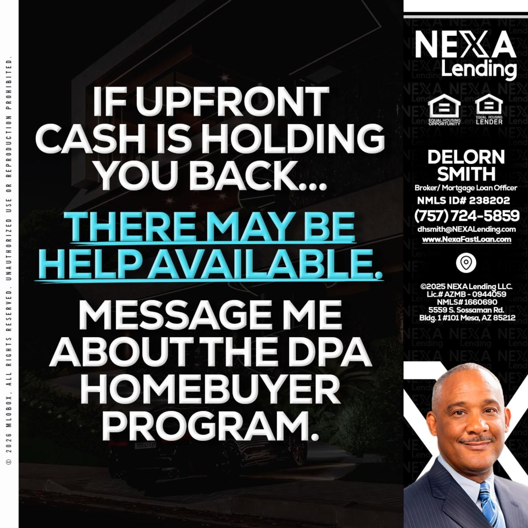 Hi, my name is Delorn Smith. I’m a Loan Officer with NEXA Lending LLC., offering personalized mortgage solutions, fast customized quotes, great rates and service with integrity.
