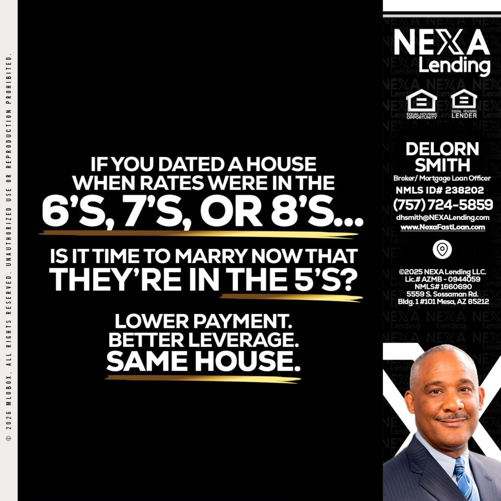 Hi, my name is Delorn Smith. I’m a Loan Officer with NEXA Lending LLC., offering personalized mortgage solutions, fast customized quotes, great rates and service with integrity.