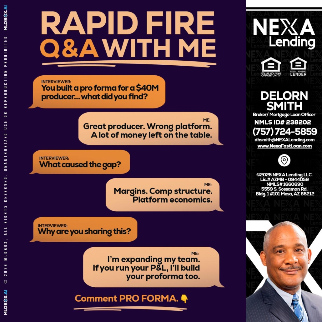 Hi, my name is Delorn Smith. I’m a Loan Officer with NEXA Lending LLC., offering personalized mortgage solutions, fast customized quotes, great rates and service with integrity.