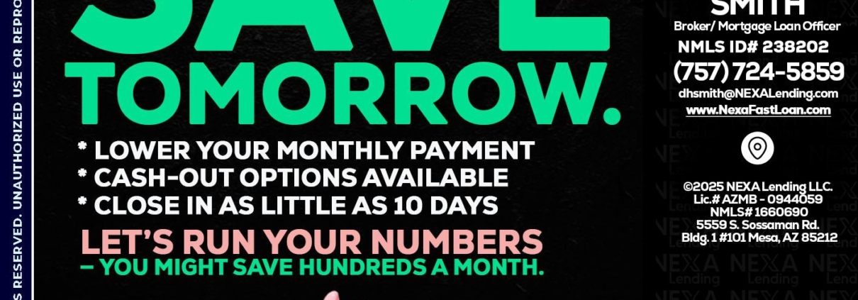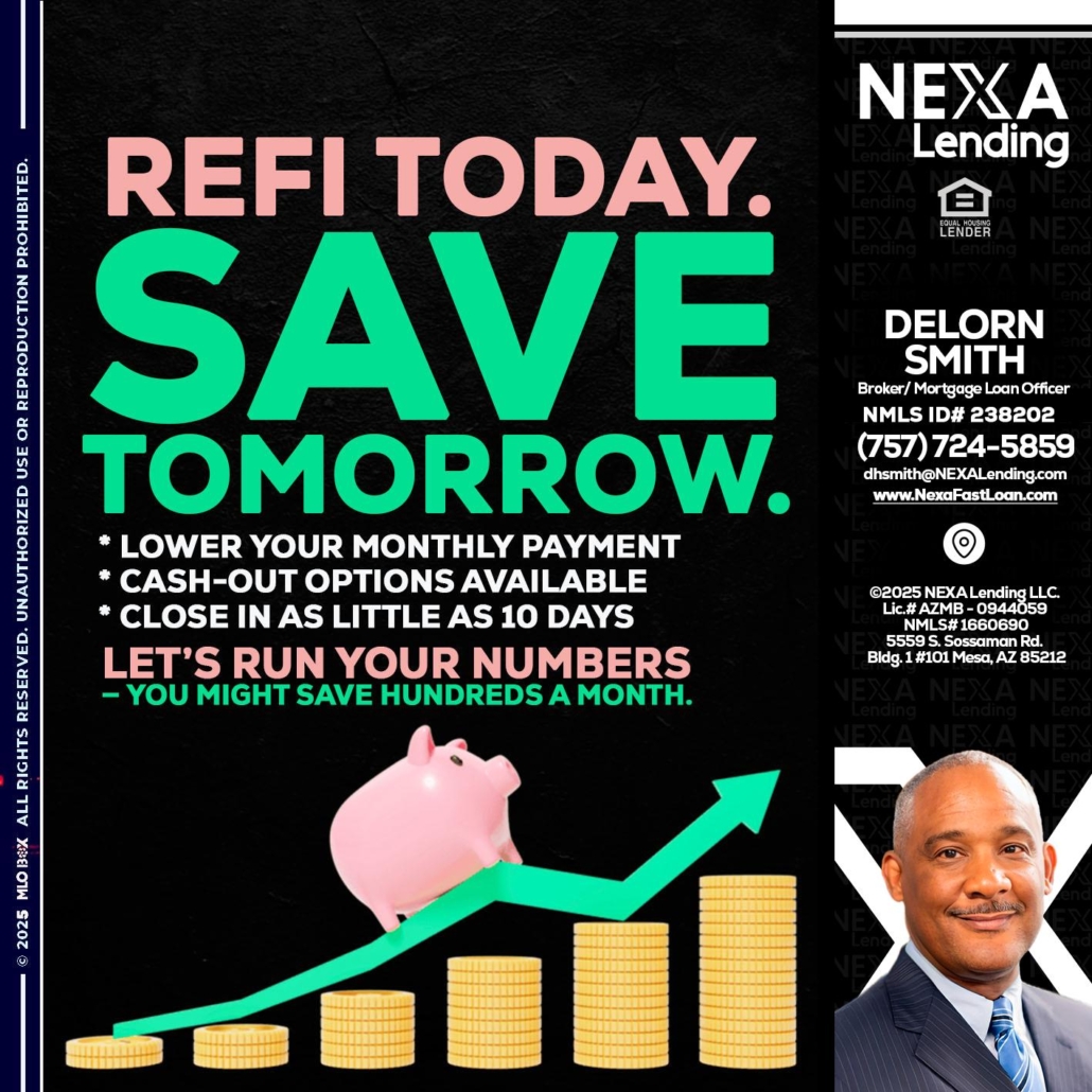 Hi, my name is Delorn Smith. I’m a Loan Officer with NEXA Mortgage LLC., offering personalized mortgage solutions, fast customized quotes, great rates and service with integrity.