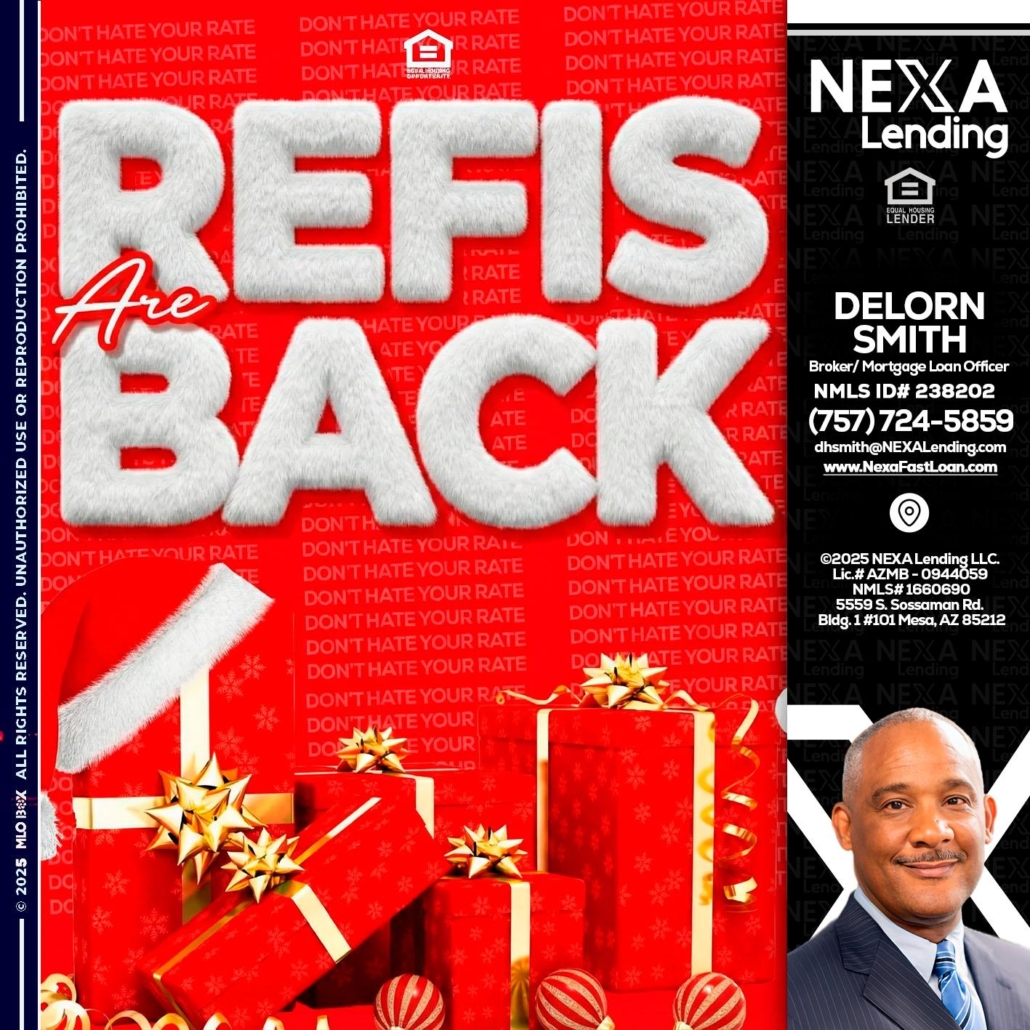 Hi, my name is Delorn Smith. I’m a Loan Officer with NEXA Lending LLC., offering personalized mortgage solutions, fast customized quotes, great rates and service with integrity.