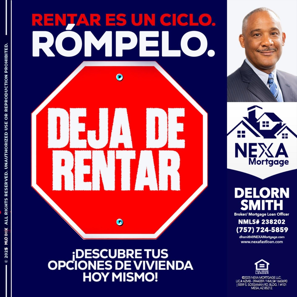Hi, my name is Delorn Smith. I’m a Loan Officer with NEXA Mortgage LLC., offering personalized mortgage solutions, fast customized quotes, great rates and service with integrity.