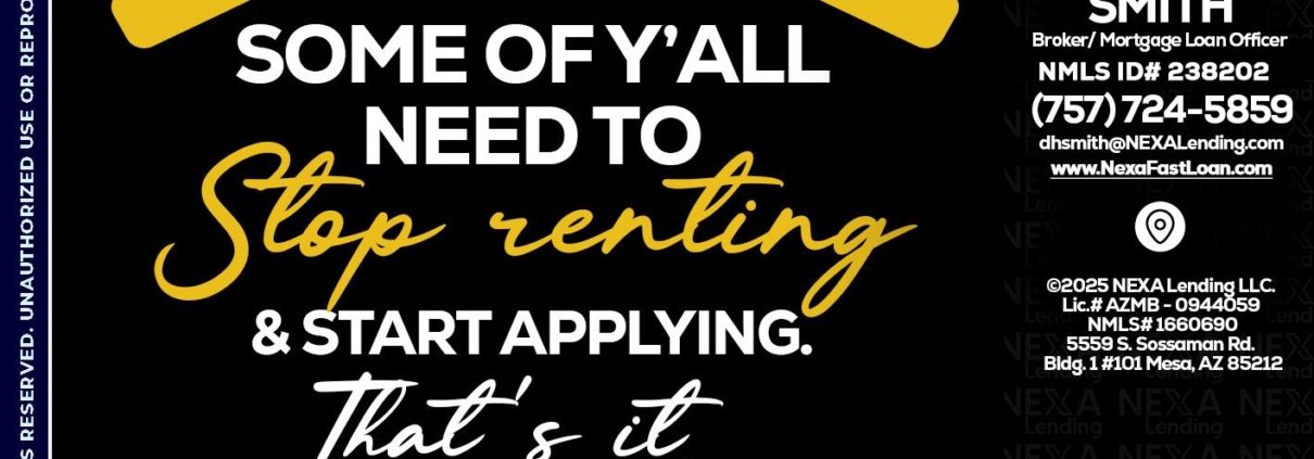 some of you - Delorn Smith -Broker/ Mortgage Loan OfficerHi, my name is Delorn Smith. I’m a Loan Officer with NEXA Mortgage LLC., offering personalized mortgage solutions, fast customized quotes, great rates and service with integrity.