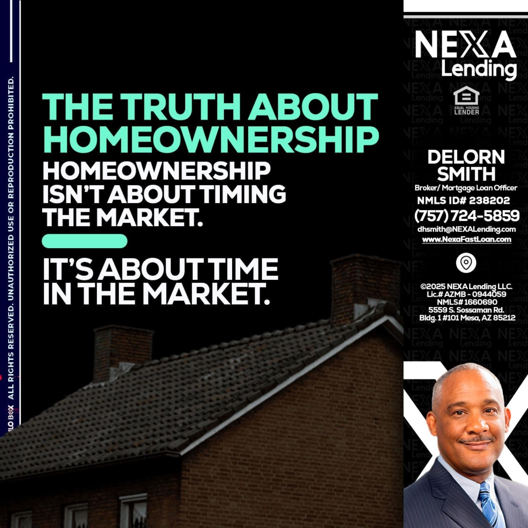 THE TRUTH ABOUT - Delorn Smith -Broker/ Mortgage Loan OfficerHi, my name is Delorn Smith. I’m a Loan Officer with NEXA Mortgage LLC., offering personalized mortgage solutions, fast customized quotes, great rates and service with integrity.